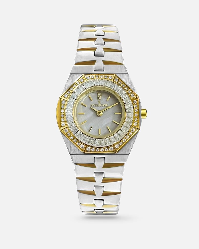 لا تفوتي الفرصة! تسوقي ساعة نسائية ستيل بلون فضي وذهبي من سفيسروز اليوم واستمتعي بضمان سنتين.