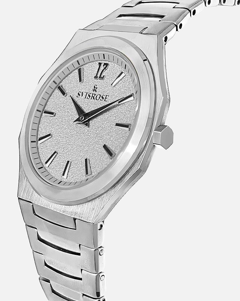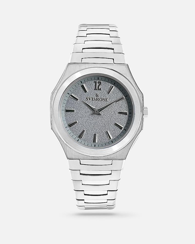 تُعد هذه الساعة الرجالية من "سفيسروز" خيارًا مثاليًا للرجل العصري الذي يبحث عن الأناقة والعملية في آنٍ واحد. تأتي بهيكل مصنوع من خليط الزنك المتين، وسير من الستانلس ستيل بلون فضي أنيق، مع مينا رمادية تضيف لمسة هادئة وفاخرة. تصميمها المتوازن يناسب جميع المناسبات، سواء اليومية أو الرسمية.