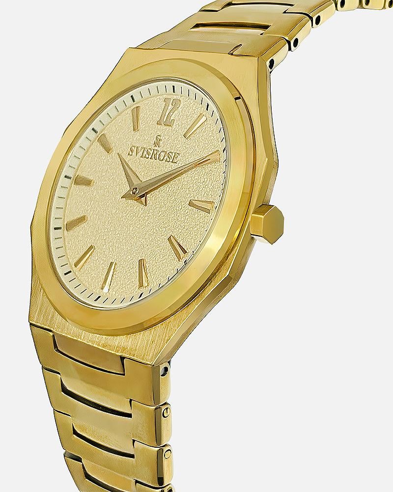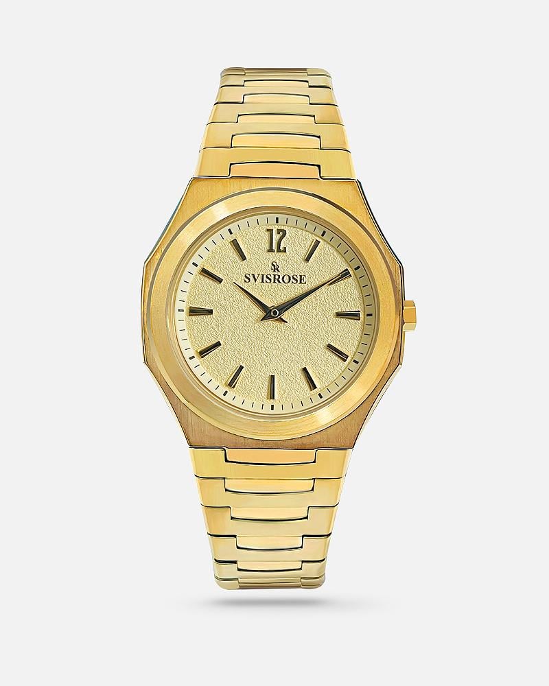 تعد ساعة رجالية ستيل بلون ذهبي من "سفيسروز" خيارًا مثاليًا للرجل الذي يقدر الأناقة والعملية. مع هيكلها خليط زنك بجودة عالية وسير الستانلس ستيل المتين، تأتي الساعة بلون ذهبي رائع يضيف إليها لمسة من الفخامة العصرية. المينا الذهبي الناعم يوفر لك تجربة مشاهدة الوقت بطريقة مريحة وأنيقة، مما يجعل هذه الساعة الاختيار المثالي لكل مناسبة.