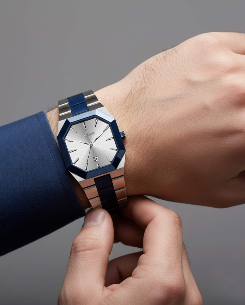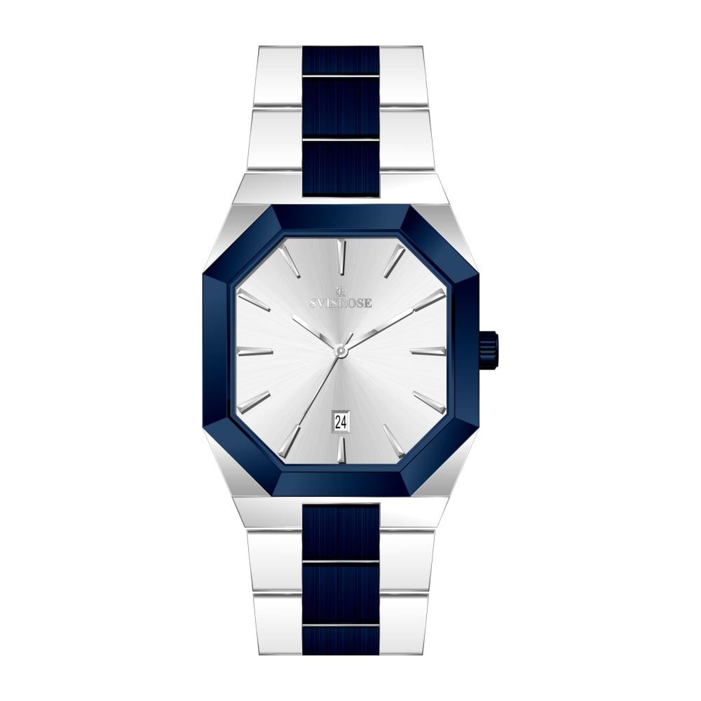 تجمع هذه الساعة الرجالية من "سفيستروز" بين التصميم المميز والعملية المطلقة. مع هيكلها المصنوع من خليط زنك بجودة عالية وسير الستانلس ستيل المتين، تقدم الساعة لمسة من الفخامة التي تدوم. المينا الفضي المزخرف بتفاصيل رائعة يعكس الضوء في كل لحظة، في حين أن التاريخ المعروض عند الساعة 6 يضيف لمسة من الوظائف العملية. تصميم الساعة العصري يجعلها اختيارًا مثاليًا للرجل الذي يقدر الأناقة البسيطة والجودة الاستثنائية.