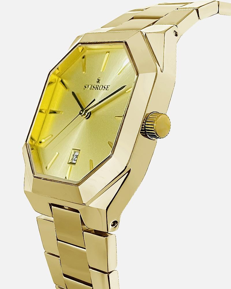 تجمع هذه الساعة الرجالية من "سفيسروز" بين التصميم المميز والعملية المطلقة. مع هيكلها المصنوع من خليط زنك بجودة عالية وسير الستانلس ستيل المتين، تقدم الساعة لمسة من الفخامة التي تدوم. المينا الذهبي المزخرف بتفاصيل رائعة يعكس الضوء في كل لحظة، في حين أن التاريخ المعروض عند الساعة 6 يضيف لمسة من الوظائف العملية. تصميم الساعة العصري يجعلها اختيارًا مثاليًا للرجل الذي يقدر الأناقة البسيطة والجودة الاستثنائية.