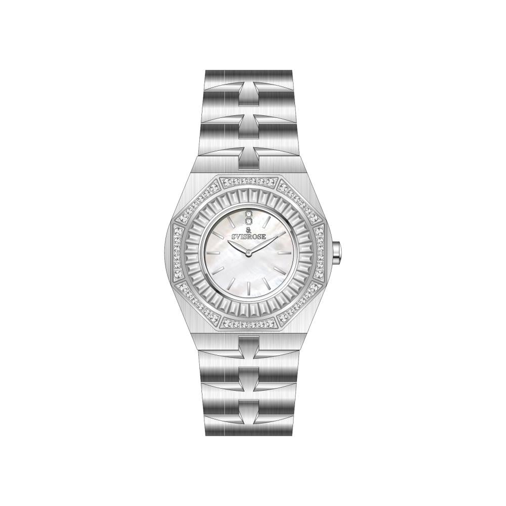 تعتبر هذه الساعة النسائية من "سفيستروز" خيارك المثالي لإضافة لمسة من التميز إلى معصمك. تم تصميم الساعة بهيكل خليط زنك بجودة عالية متين وسير ستانلس ستيل لامع، مما يجعلها تجمع بين القوة والجمال. المينا الفضي اللامع يضيف سحرًا من نوع خاص، بينما الفصوص الزركونية الموزعة حول الإطار تضفي تألقًا فاخرًا يعكس الضوء في كل لحظة.