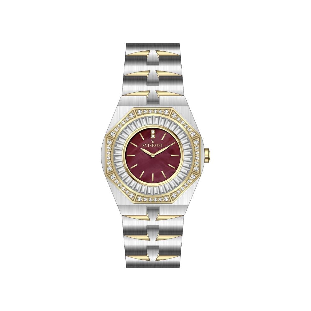 تعتبر هذه الساعة النسائية من "سفيستروز" خيارك المثالي لإضافة لمسة من التميز إلى معصمك. تم تصميم الساعة بهيكل خليط زنك بجودة عالية متين وسير ستانلس ستيل لامع، مما يجعلها تجمع بين القوة والجمال. المينا العودي اللامع يضيف سحرًا من نوع خاص، بينما الفصوص الزركونية الموزعة حول الإطار تضفي تألقًا فاخرًا يعكس الضوء في كل لحظة.