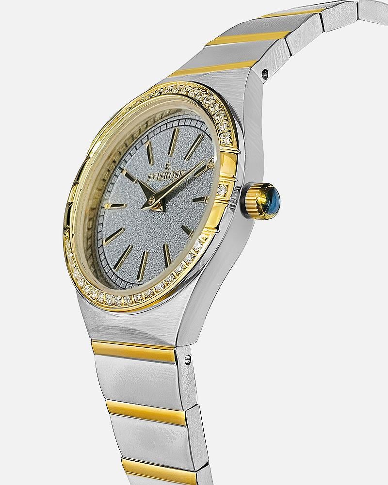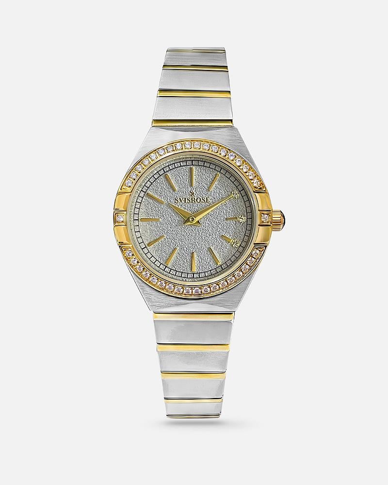 امنحي إطلالتك لمسة من الفخامة مع ساعة سفيسروز النسائية بلونها الفضي والذهبي الأنيق. تصميمها العصري المصنوع من خليط زنك عالي الجودة مع سير ستانلس ستيل لامع يجعلها قطعة مثالية لكل سيدة تبحث عن التميز.